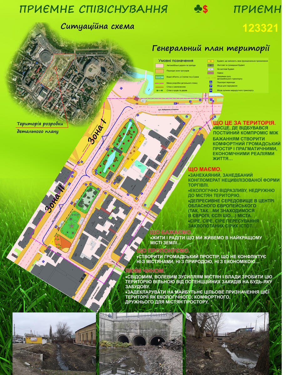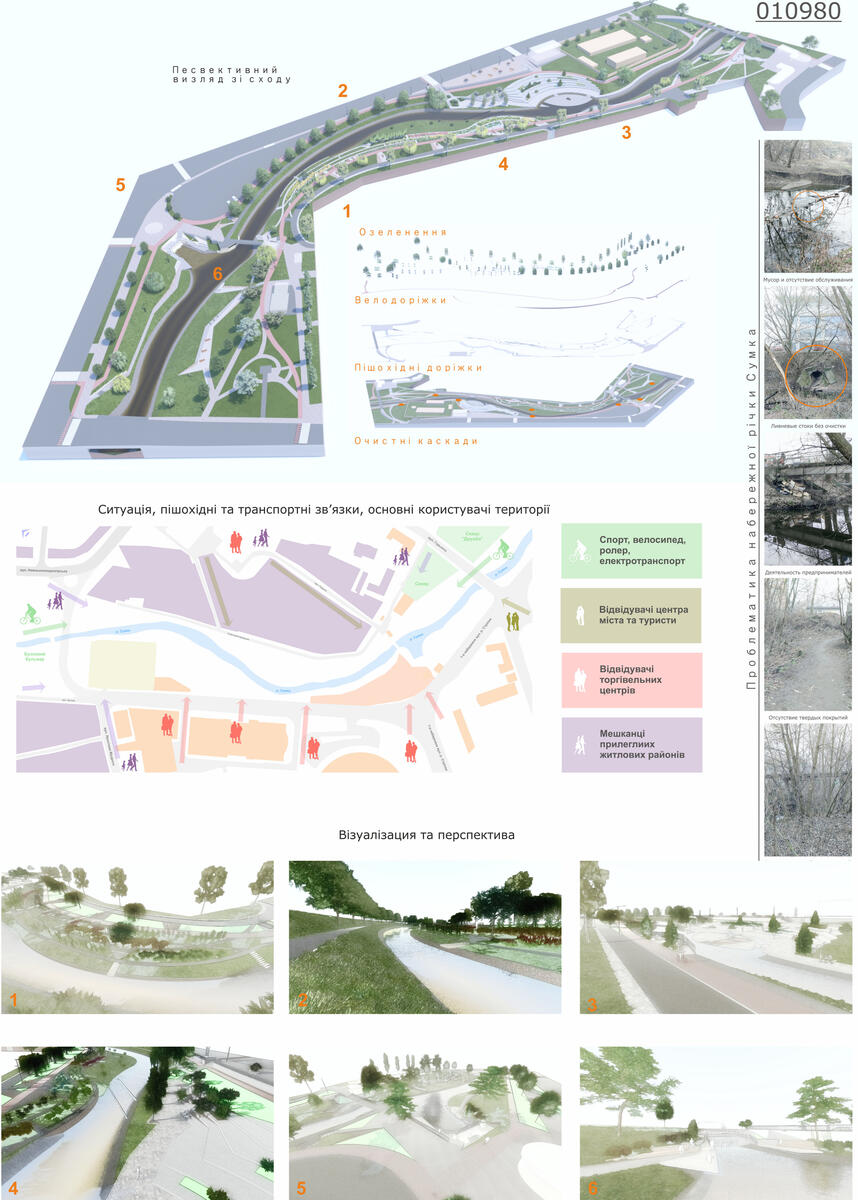 У Сумах визначили кращі проєктні пропозиції з реконструкції території, обмеженої вул. 1-а Набережна р. Стрілка, річкою Сумка, вул. Кооперативна, та реконструкції прибережної зони річок Сумка і Стрілка від мосту Воскресенський до пішохідного мосту Нижньохолодногірський.