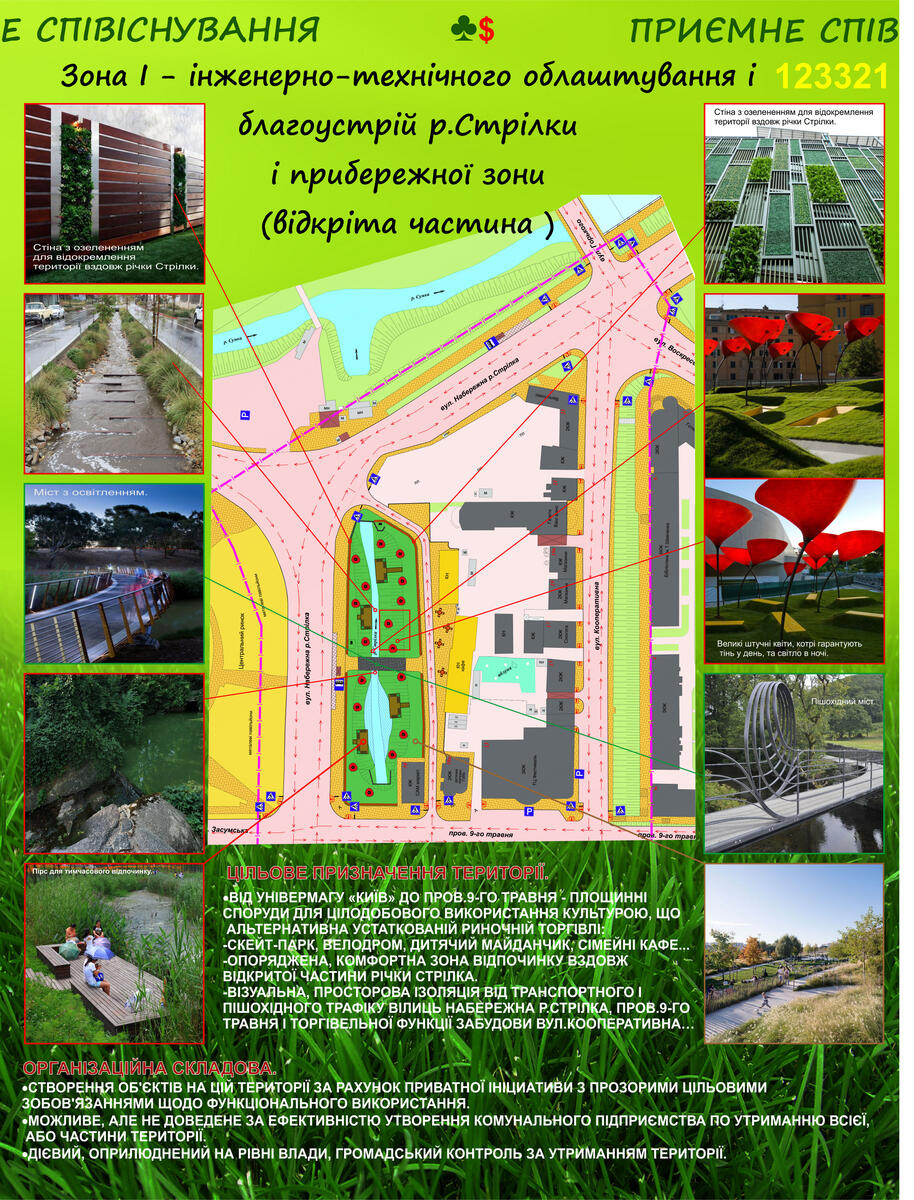 Переможцем архітектурного бліц-конкурсу на кращу проєктну пропозицію із реконструкції території, обмеженої вул. 1-а Набережна р. Стрілки, річкою Сумка, вул. Кооперативна журі визначило авторський колектив ПП «Фішер – архітектори та інженери», керівник – Сергій РИБАЧОК.