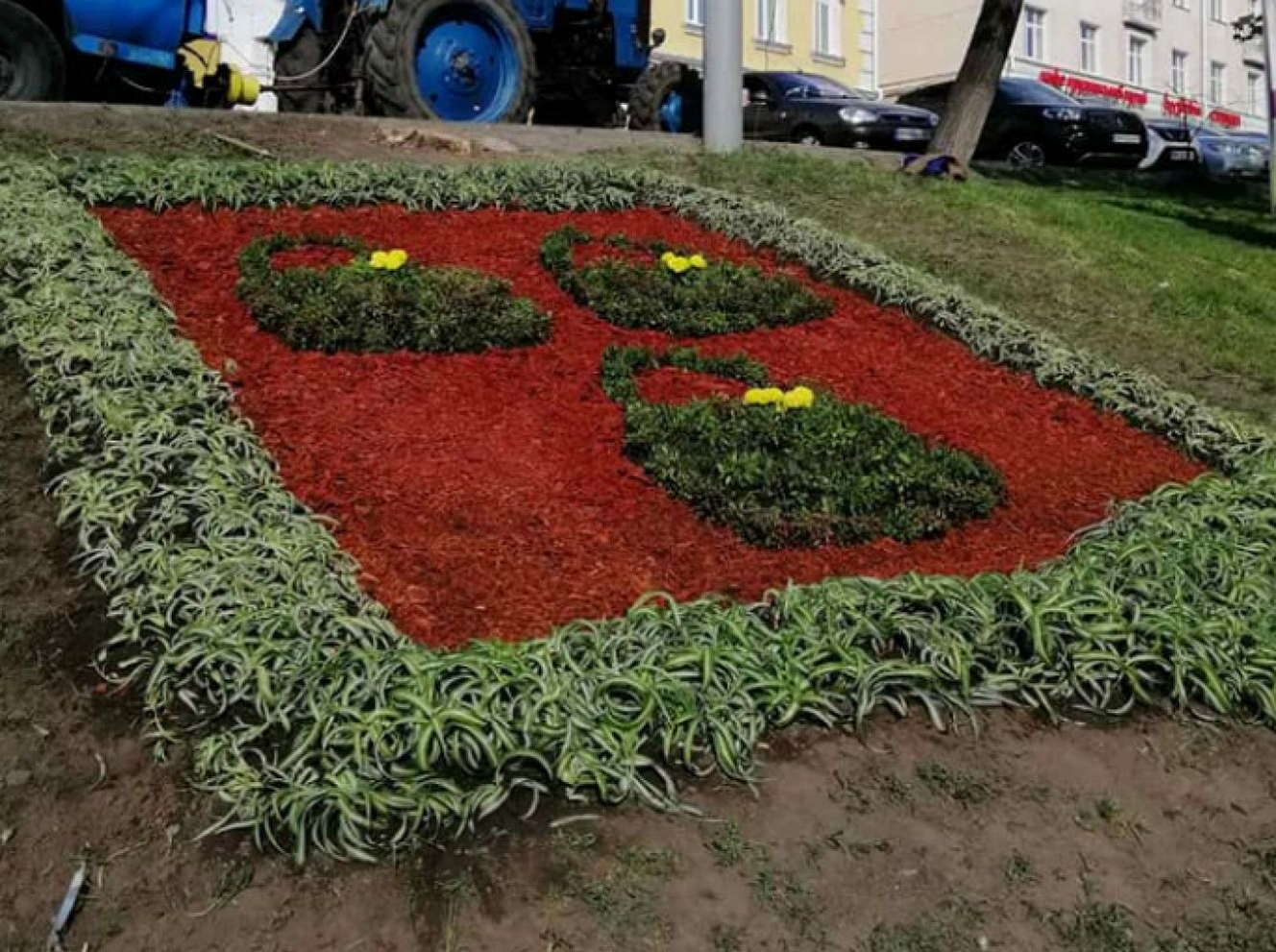 Раніше тут були дерев'яні цифри, що показують, скільки років місту Суми, які міняли перед днем міста у вересні, і герб із дерев’яними. Тепер сумки - квіткові, а цифри зникли.