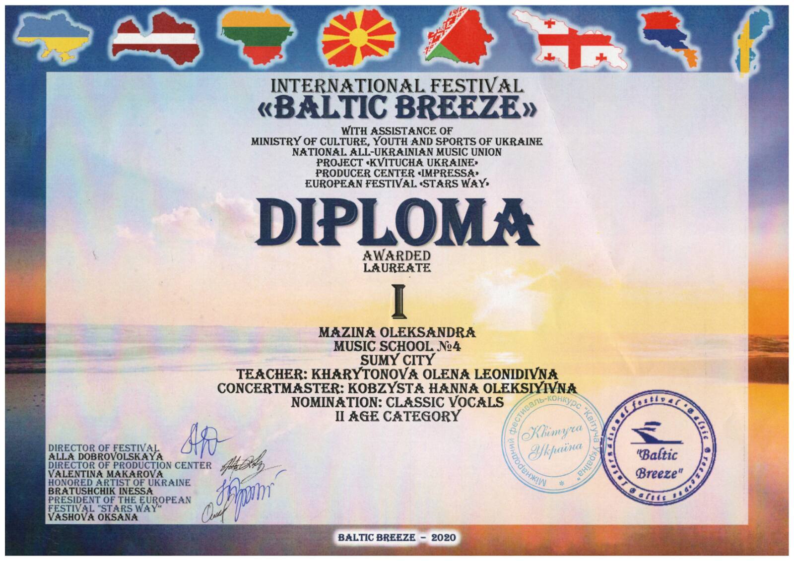 Учнi Сумської ДМШ № 4 здобули лауреатство І премiї на Мiжнародному дистанцiйному фестивалi-конкурсi дитячої та юнацької творчостi «Балтiйський бриз».