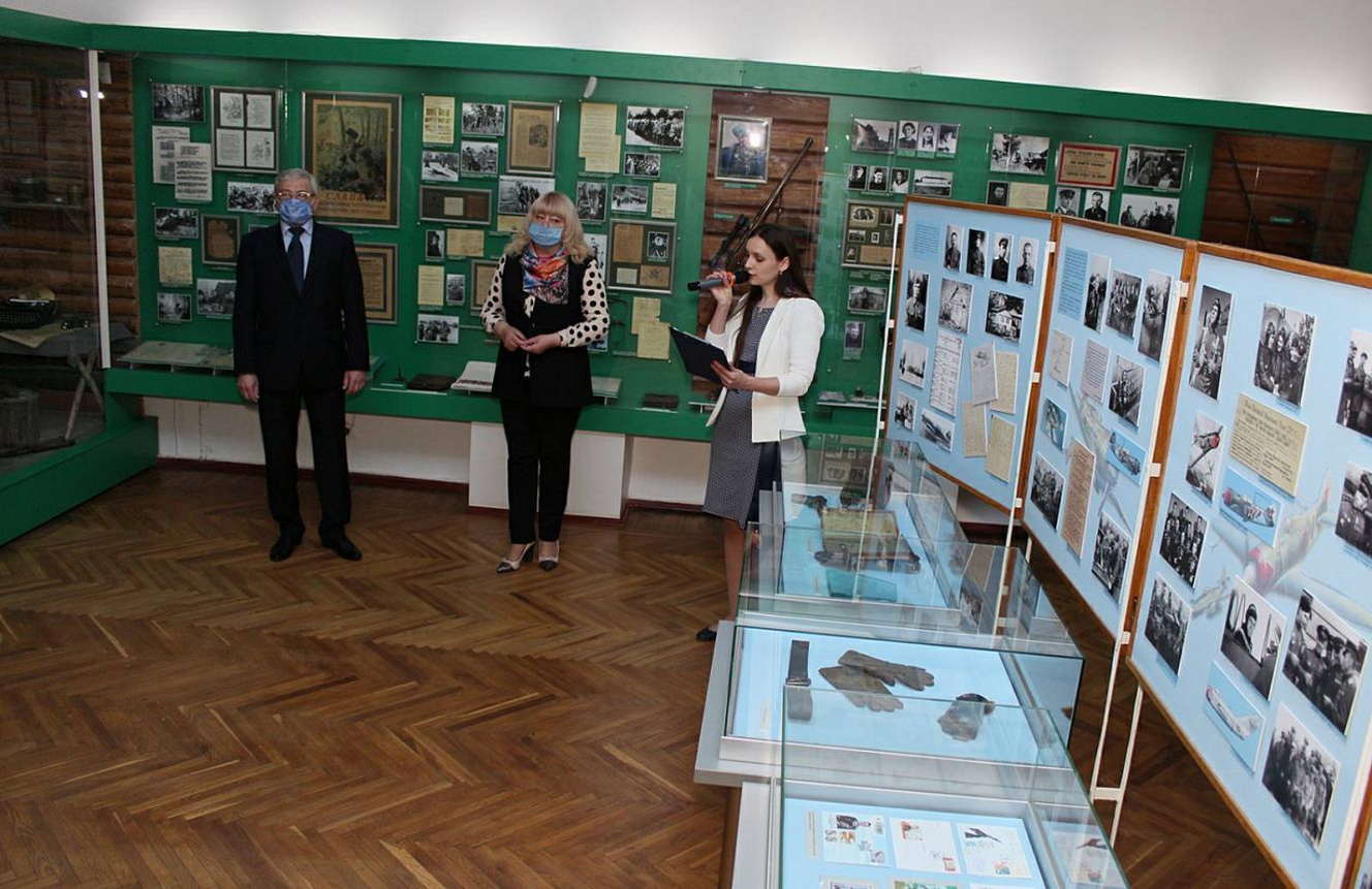 Директор музею Владислав Терентьєв розповів про увічнення пам’яті льотчика-винищувача в музейних експозиціях області, зокрема, згадав про музей І. Кожедуба у с. Ображіївка Шосткинського району. Ознайомив присутніх з унікальними особистими речами льотчика-аса з фондового зібрання краєзнавчого музею та яскравими епізодами з його біографії.