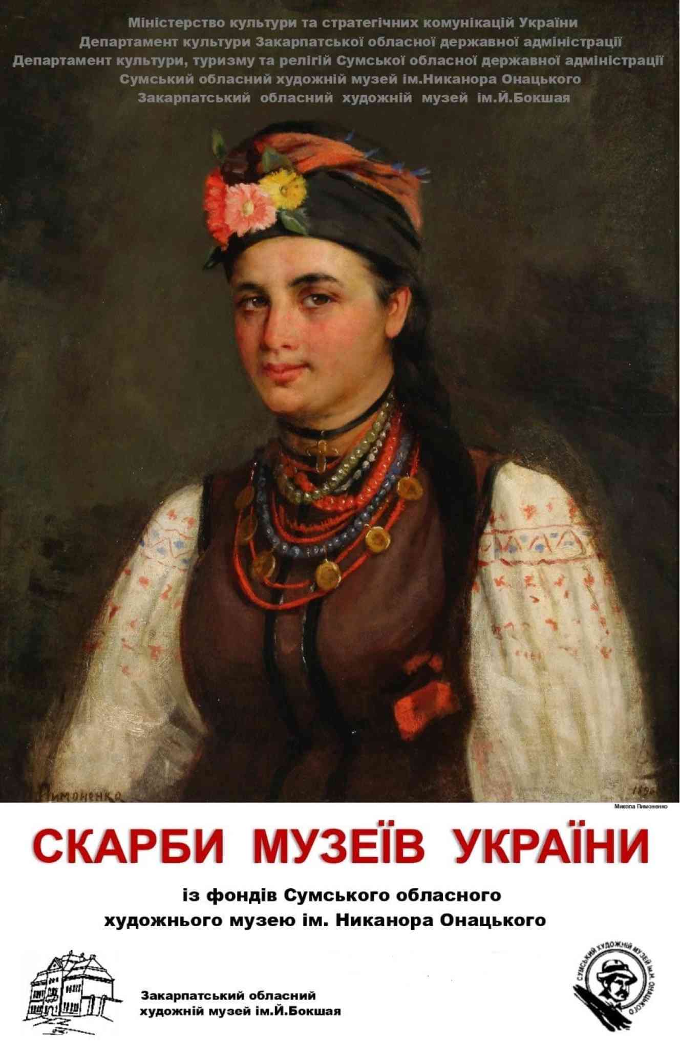 У рамках Меморандуму про співробітництво у сферах культури, музейної справи та охорони культурної спадщини, укладеного між Департаментом культури, туризму та релігій Сумської обласної державної адміністрації та Департаментом культури Закарпатської обласної державної адміністрації, у Закарпатському обласному художньому музеї ім. Й. Бокшая триває експонування виставки творів із колекції Сумського обласного художнього музею імені Никанора Онацького «Скарби музеїв України».