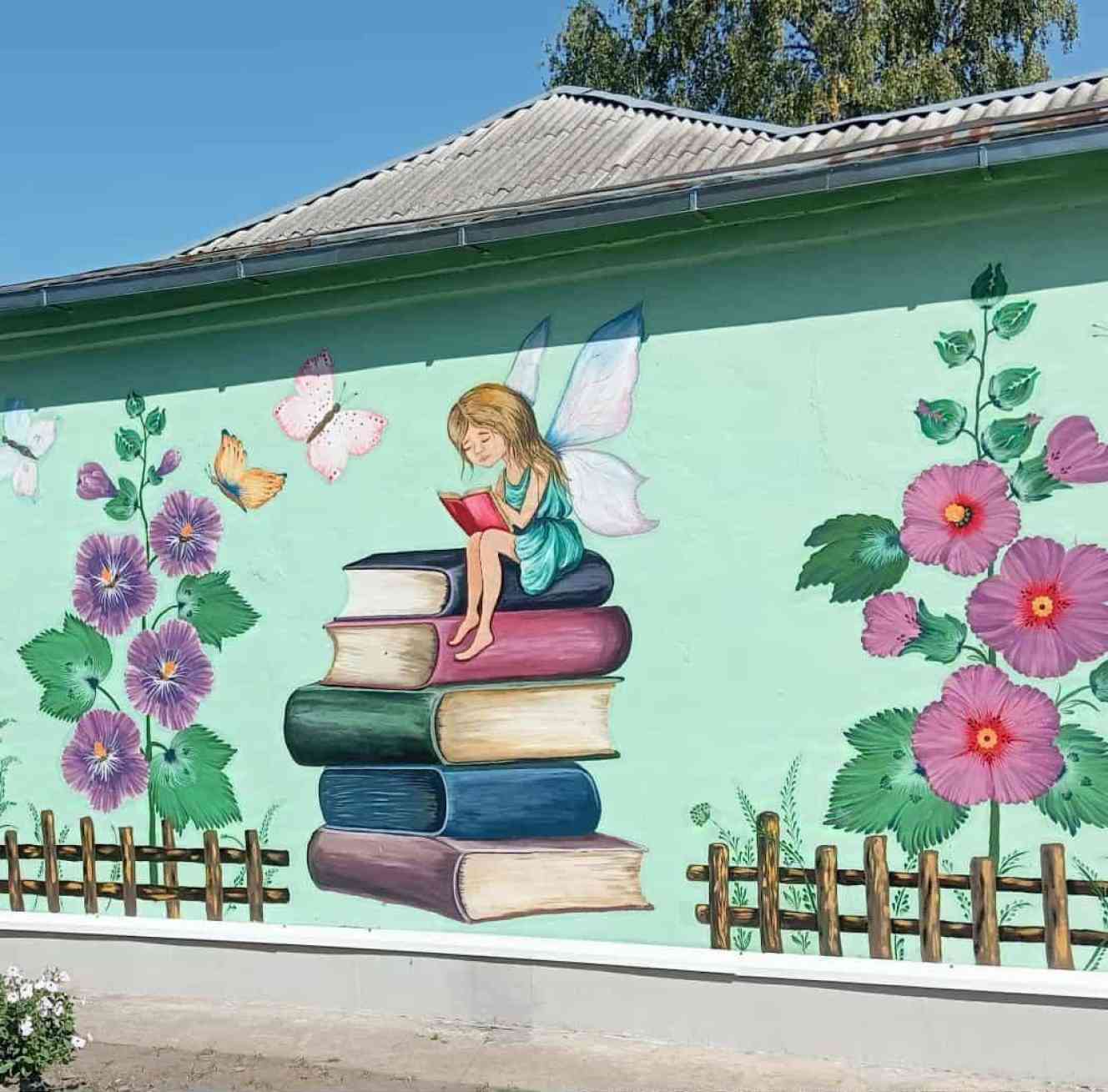 Головна бібліотека Буринської громади тепер прикрашена мальвами та книжковою феєю.