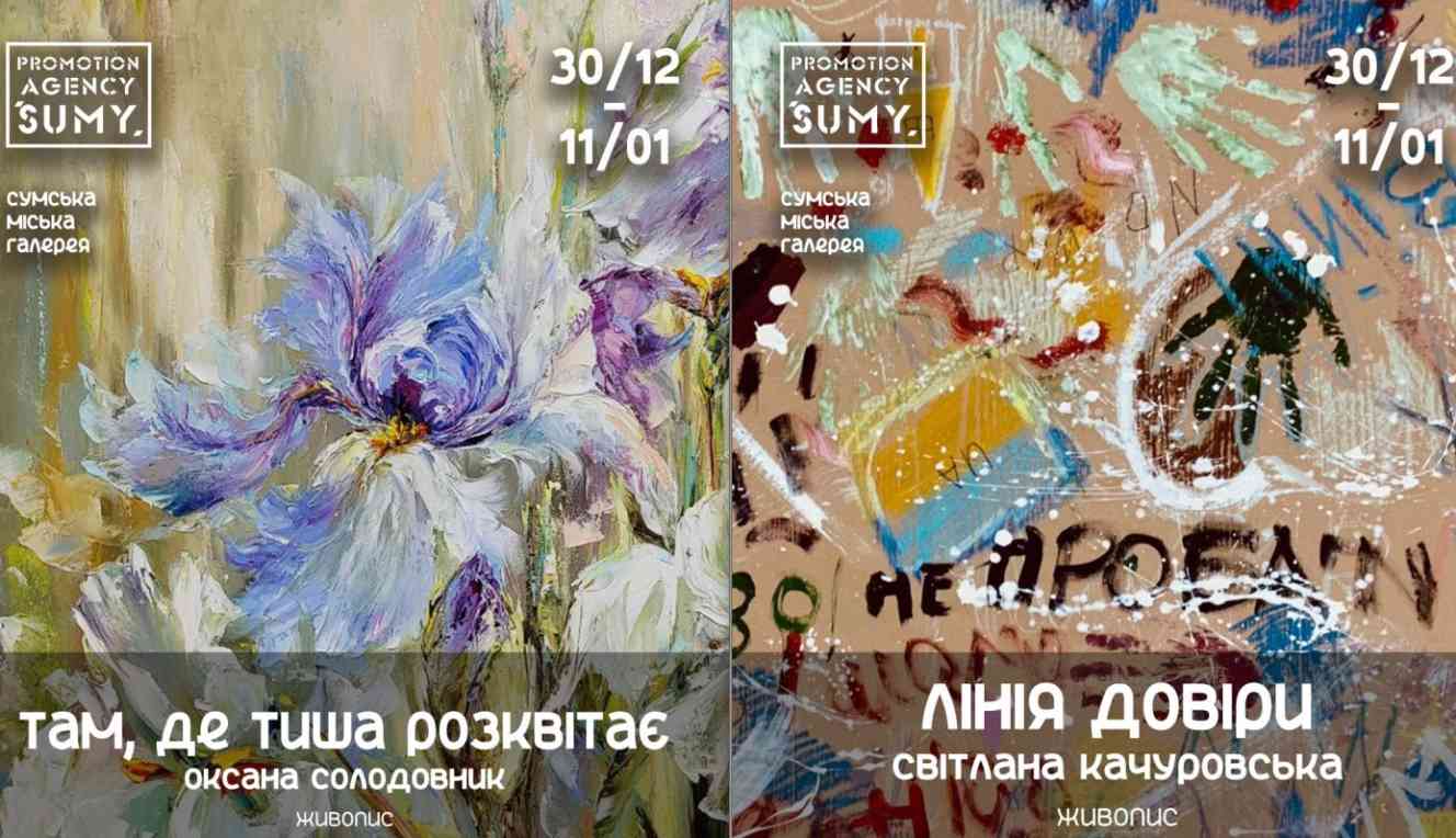 Агенція промоції "Суми" запрошує до Сумської міської галереї на відкриття виставок Оксани Солодовник та Світлани Качуровської з учнями.