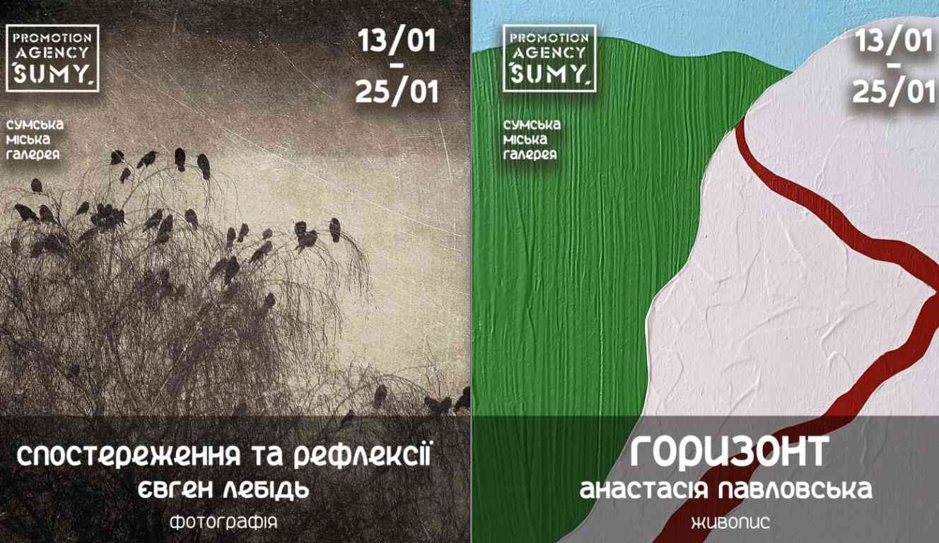 13 січня агенція промоції "Суми" запрошує до Сумської міської галереї на відкриття виставок Євгена Лебідя та Анастасії Павловської.
