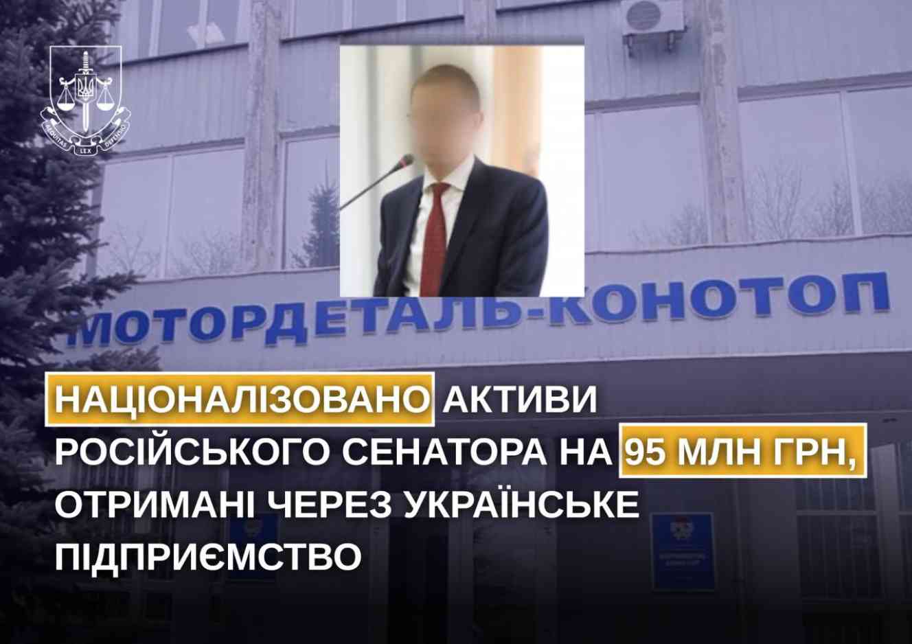 У власність держави стягнуто активи на понад 95 млн грн – право вимоги за контрактами, що належало підконтрольній сенатору компанії-нерезиденту до українського підприємства ТОВ «Мотордеталь-Конотоп».