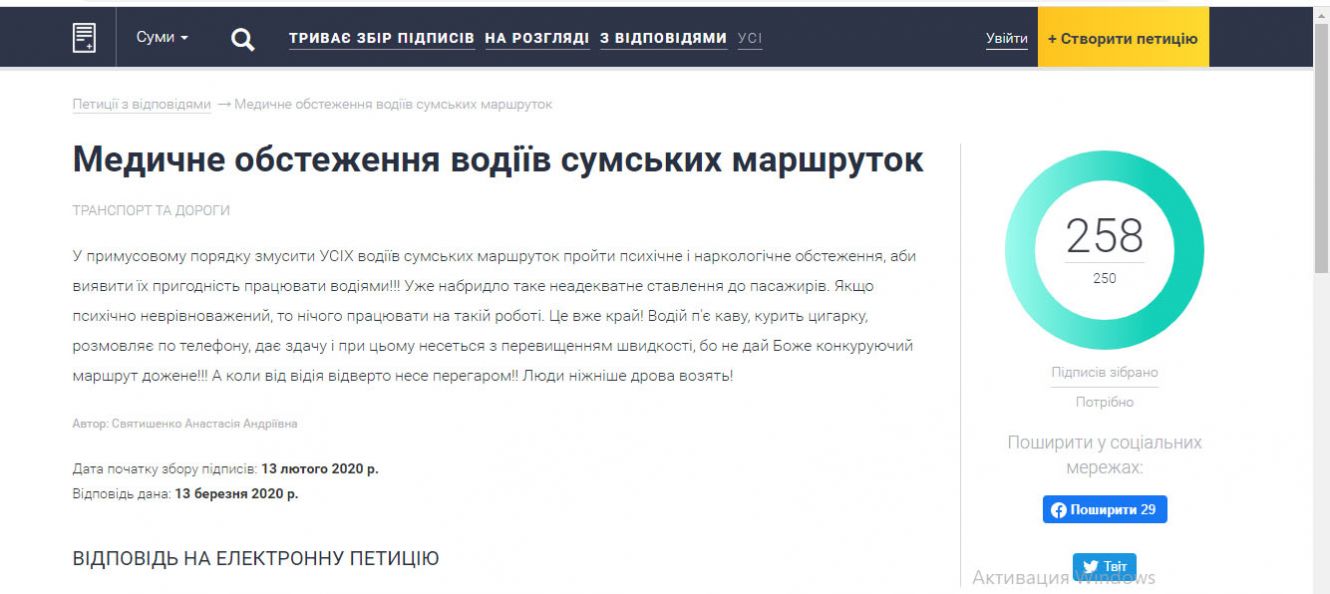 Така відповідь міської влади на онлайн-петицію «Медичне обстеження водіїв сумських маршруток»