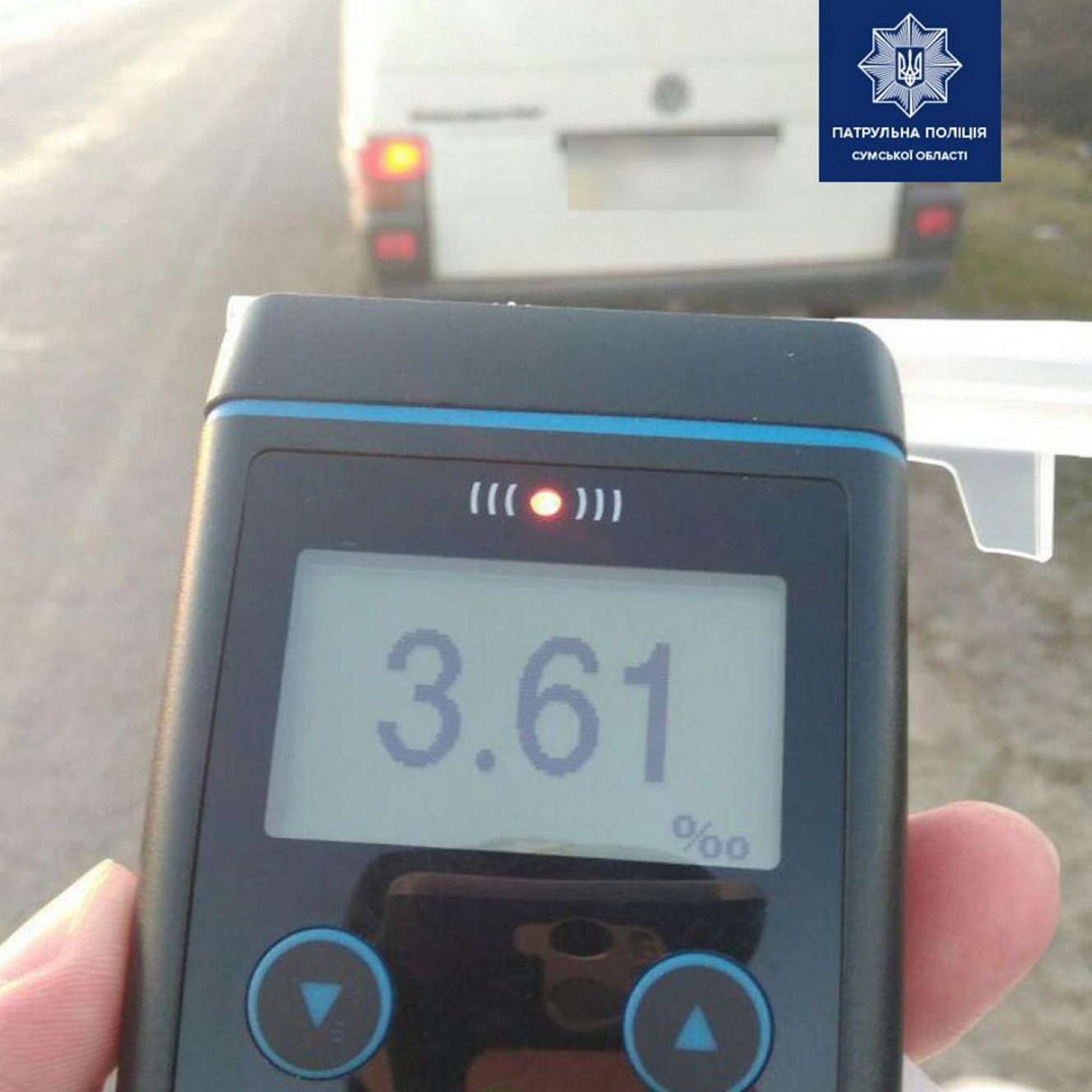 Чоловік мав ознаки алкогольного сп’яніння. У присутності свідків він пройшов огляд на стан сп’яніння. Результат зафіксував 3,61 проміле, що перевищує допустиму норму алкоголю в 18 разів.
