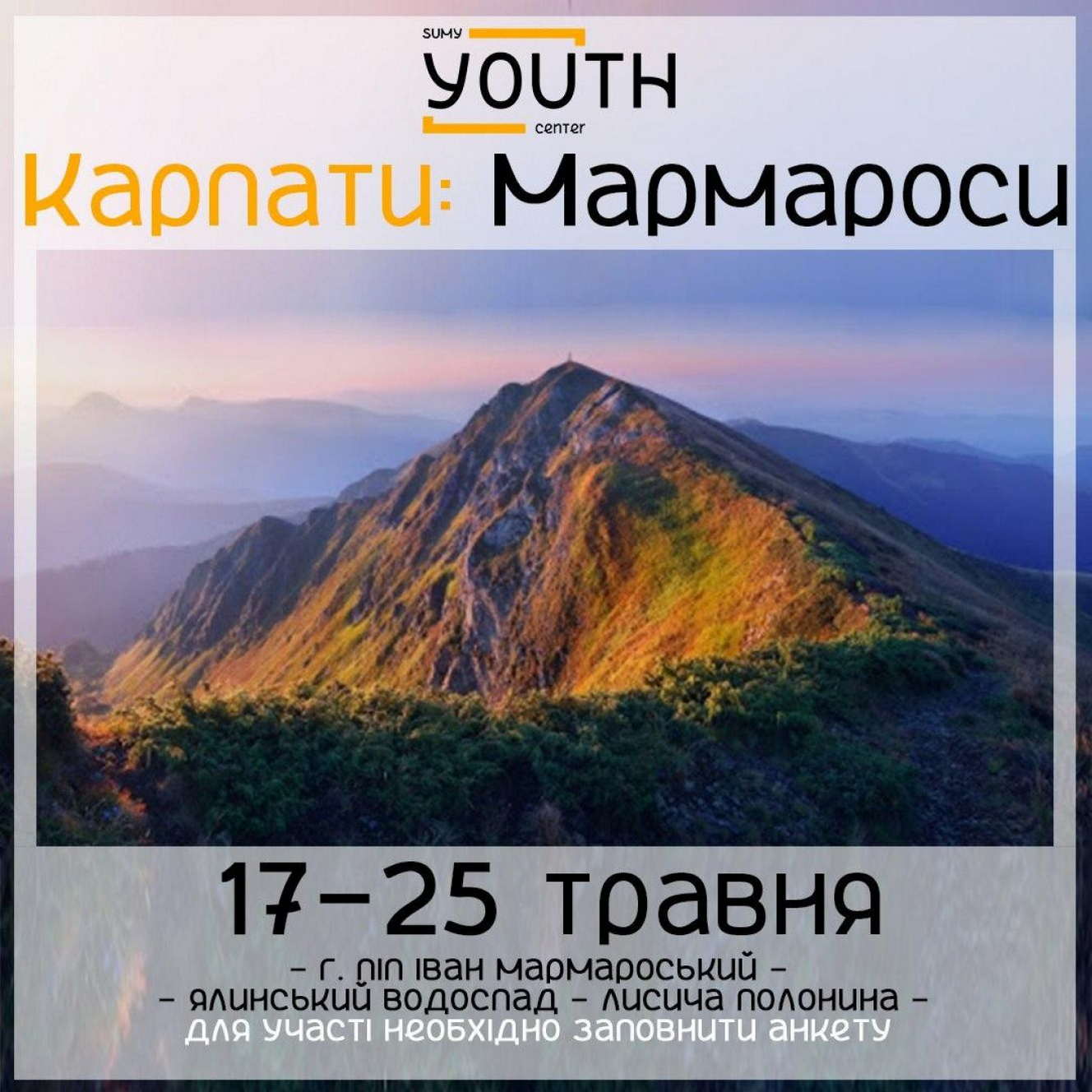 Сумський міський центр дозвілля молоді запрошує сумську молодь у подорож на Мармароси.