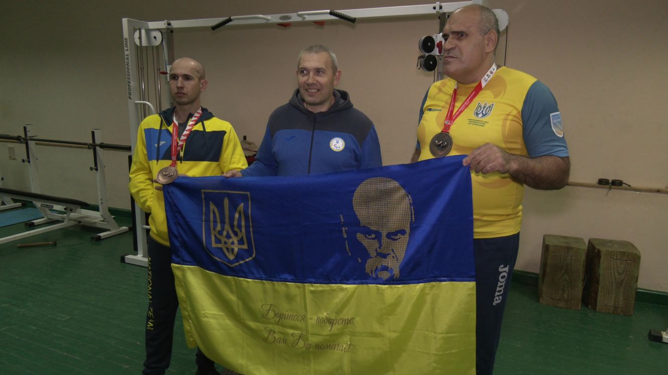 Показали сумські армреслери й прапор, з яким їздили на чемпіонат світу. На ньому – Тарас Шевченко і слова Кобзаря: «Борітеся – поборете, вам Бог помагає». Говорять, ще піднімуть його на п’єдестал пошани міжнародних турнірів.