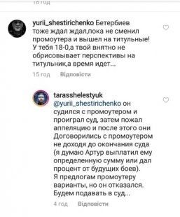 Про такі наміри професіональний боксер Тарас Шелестюк (18-0, 10 КО повідомив в коментарях під постом на своїй сторінці в Instagram.